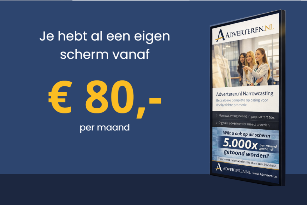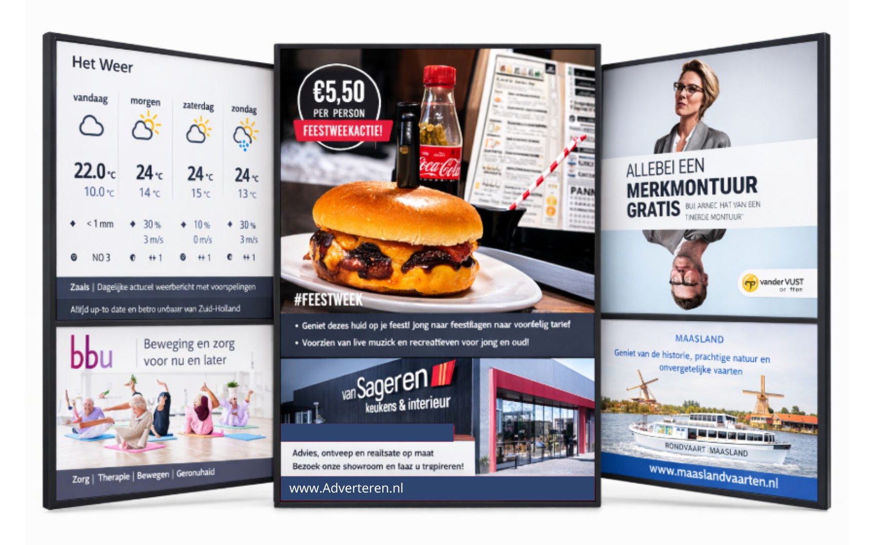 Adverteren.nl helpt bedrijven op een moderne, effectieve en lokale manier zichtbaar te worden, door advertenties en bedrijfsinformatie te tonen op digitale schermen waar dagelijks veel potentiële klanten langskomen.